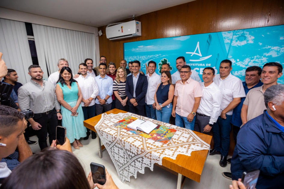 A Câmara Municipal de Maceió prestigiou a posse dos vereadores Eduardo Canuto e Brivaldo Marques como secretários de Esporte e de Cultura e Economia Criativa, respectivamente, na sede da Prefeitura, nesta segunda-feira (22). A posse contou com a presença de 17 vereadores, entre eles o presidente da Casa, Chico Filho, que vê a nomeação pelo prefeito JHC como reconhecimento da capacidade dos parlamentares em assumir as pastas. Ele também ressaltou a boa relação entre os poderes Executivo e Legislativo.